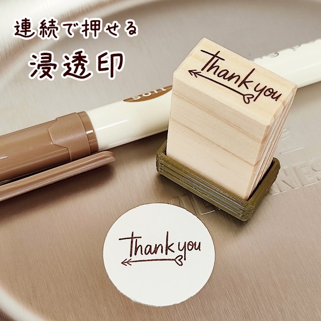 【Thank you and Heart arrow】浸透印 11x19mm ハンドメイド キャップ付き 矢印 ハート ありがとう メッセージ 英語 手書き
