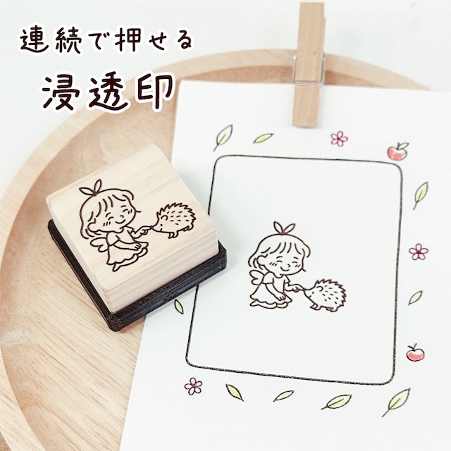 【るんるんとハリネズミ】浸透印 色指定可能 ハンドメイド キャップ付き ハート 笑顔 女の子