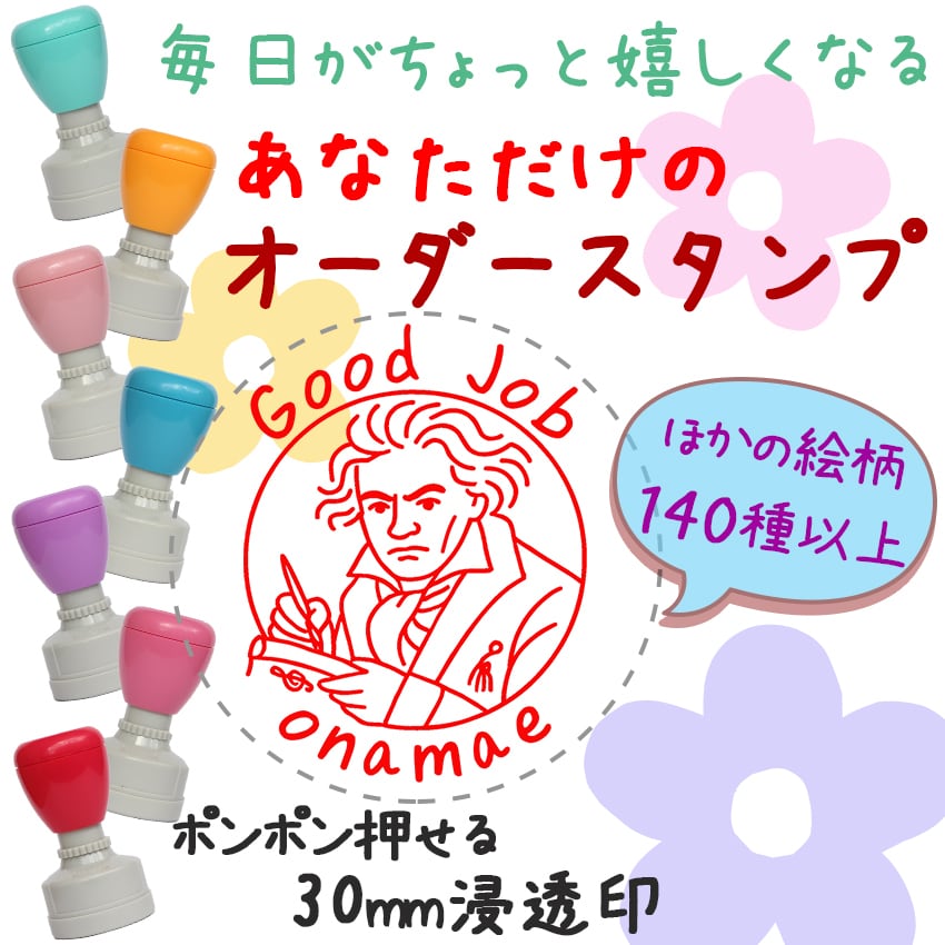 【ベートーヴェン】30mm オーダーメイド スタンプ 浸透印 先生スタンプ はんこ セミオーダー 音楽 偉人