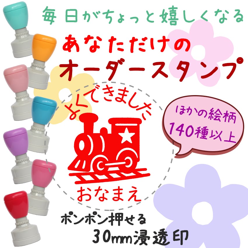 【LS:機関車】30mm オーダーメイド スタンプ 浸透印 先生スタンプ はんこ セミオーダー 汽車