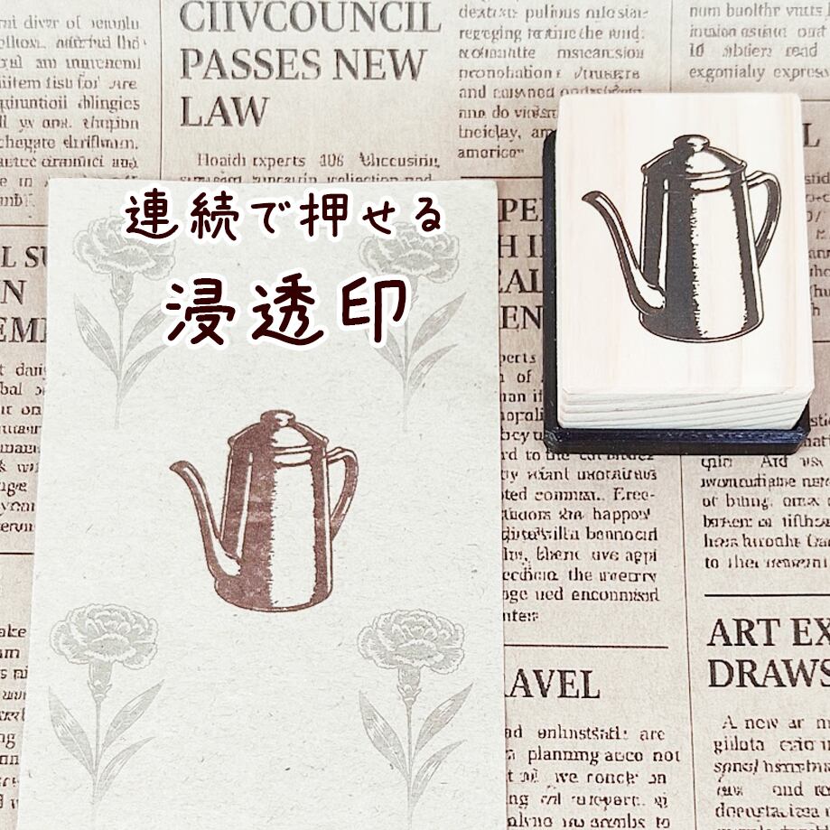 【コーヒーケトル】27x37mm 浸透印 ハンドメイド キャップ付き 手帳 ドリップポット