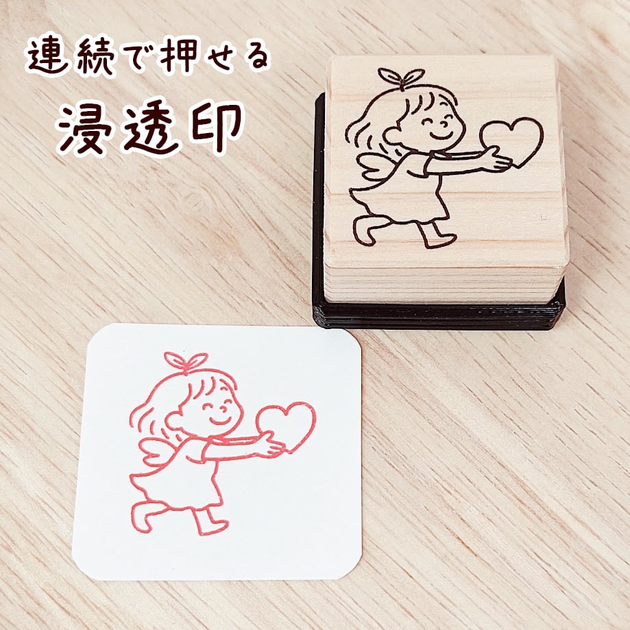 【ハートあげる】浸透印 ハンドメイド キャップ付き ハート 妖精 笑顔 女の子 葉っぱ
