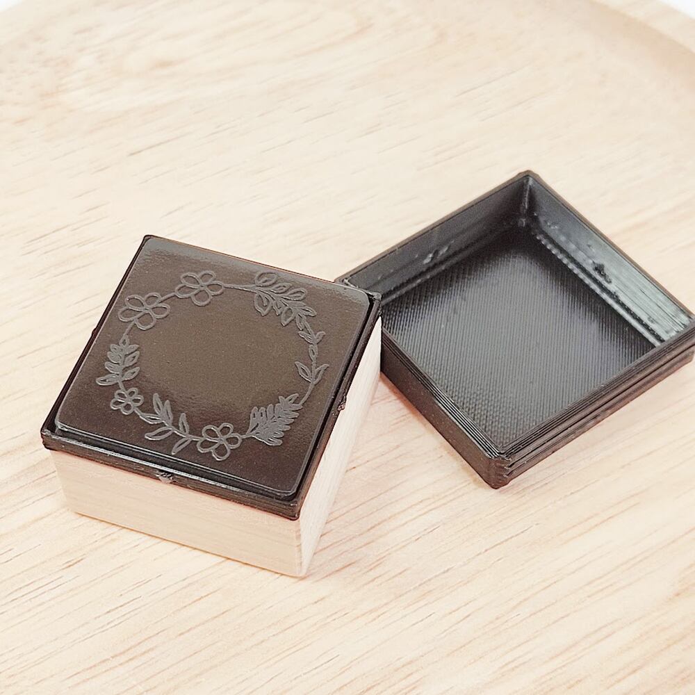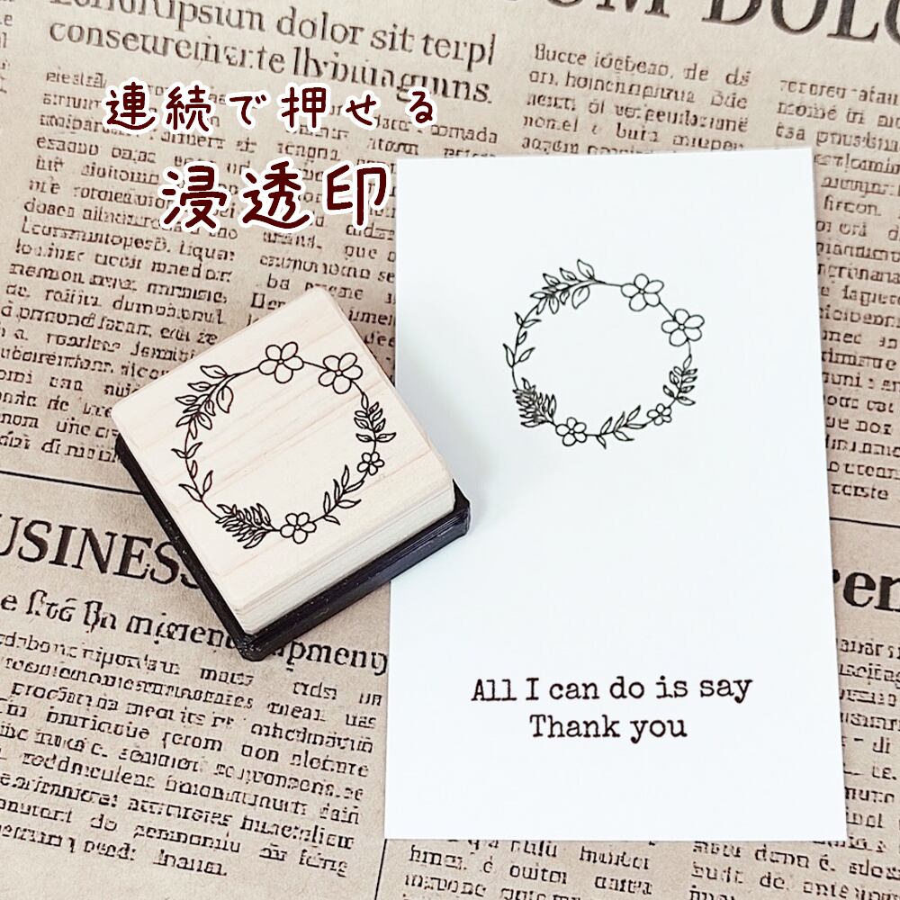 【花と葉っぱの輪っか】28mm 角 浸透印 ハンドメイド 色指定可能 キャップ付き