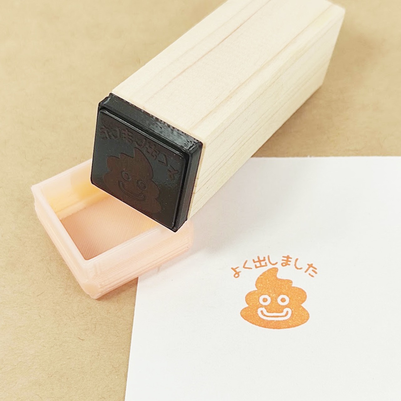 【うんち出しました】浸透印 15mm 角 ハンドメイド 色指定可能 キャップ付き 便 うんこ
